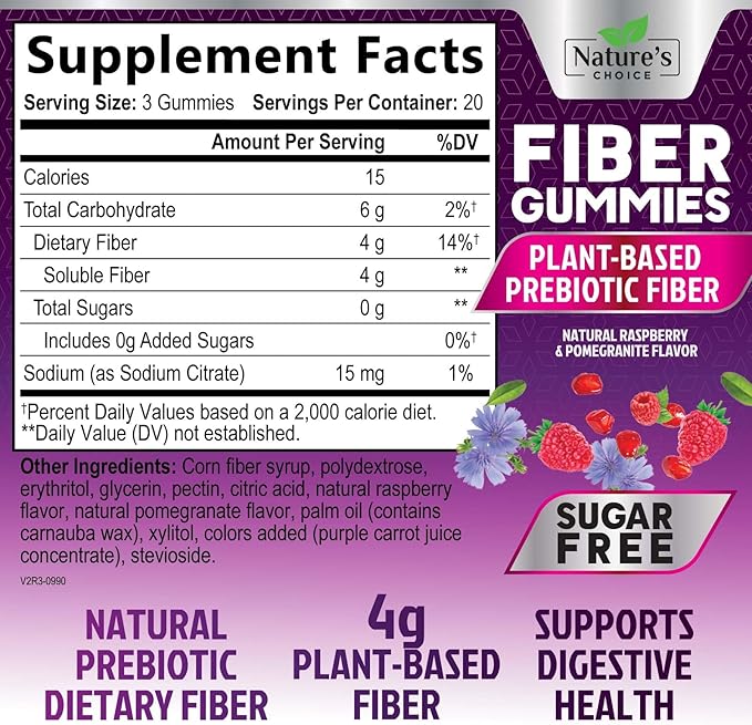 - Natural Fiber Supplement: Crafted from nature-derived, non-GMO ingredients, our fiber supplement gummies are environmentally friendly and free from artificial additives, offering a pure, wholesome supplement
