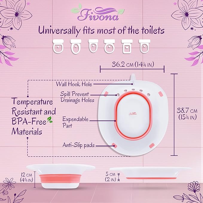 - PREMIUM QUALITY SEAT - Fivona expandable seat is made of high-quality temperature-resistant materials that allow it to withstand water temperature ideal for yoni steam procedures. It is also designed to fit most of the standard toilet shapes and sizes.