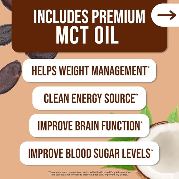 - SUPPORTS WEIGHT MANAGEMENT: Added MCT oil helps boost satiation and energy supply, with cocoa giving Naked Shake it’s delicious flavor. No artificial flavors, sweeteners, or colors.