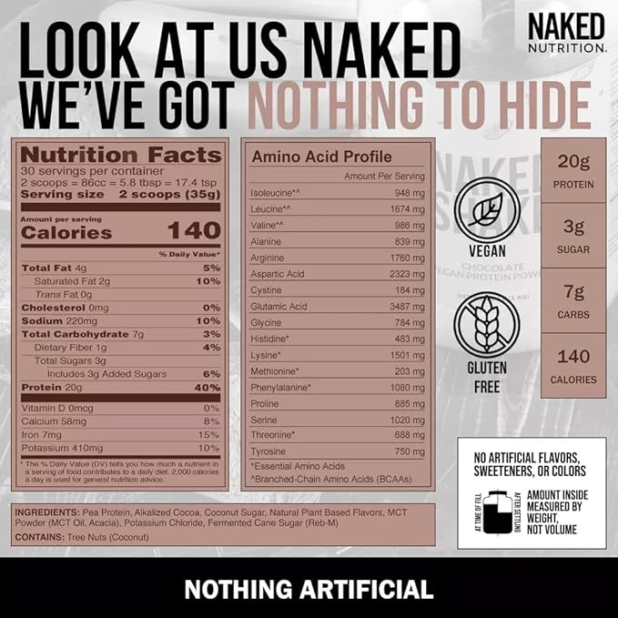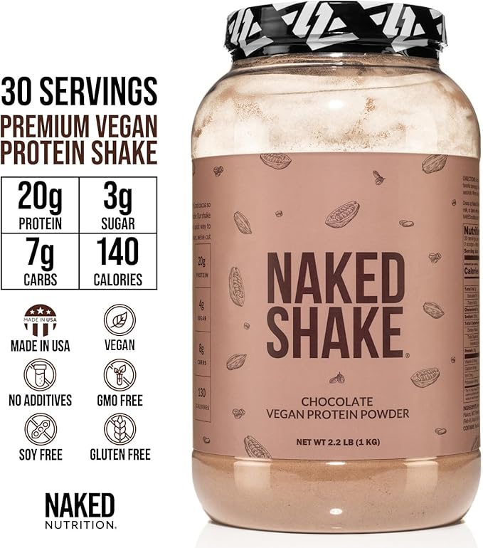 - SUPERIOR PLANT PROTEIN: Dairy-Free and vegan-friendly – made from yellow split peas grown in the USA and Canada. Chocolate Naked Shake offers a complete amino acid profile, making it the ideal source of chocolate plant based protein.
