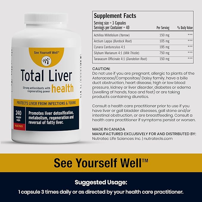 See Yourself Well Total Liver Health: Liver Cleanse, Detox & Repair Fatty Liver. Milk Thistle Extract, Dandelion Root, Yarrow, Burdock Root & Cynara (Artichoke) to Support Healthy Liver Function