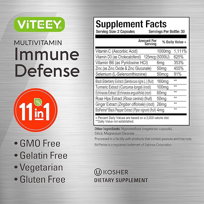 - SOURCED FROM ALL NATURAL INGREDIENTS - Viteey's immunity boost defense capsules are peanut-free, tree nut-free, non-GMO, gluten-free, gelatin-free, and vegetarian.