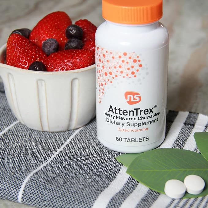 NeuroScience Brain Energy & Focus Supplement for Adults, Teens & Children - AttenTrex - Support Brain Health & Optimal Attention - Tackle Assignments & To-Do Lists - Berry Flavor (60 Chewable Tablets)