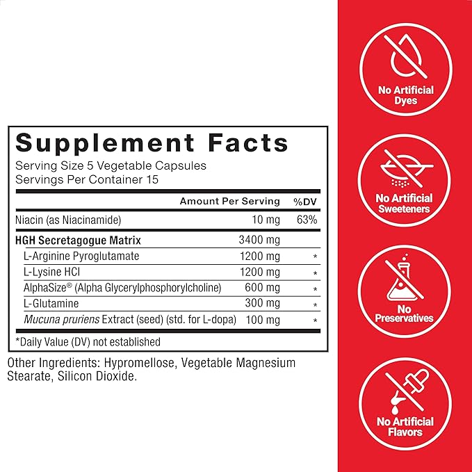 - STARTS WORKING AFTER ONE DOSE: Unlike some HGH supplements, Prime HGH Secretion Activator contains scientifically tested AlphaSize, shown in a clinical study to trigger a significant increase in HGH after one dose when used during strength training.