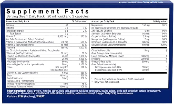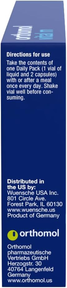 Orthomol Vital M Vial, Men's Multivitamin, 7-Day Supply, Vitamins A, B, C, D, E, K, Calcium, Iodine, Omega-3…