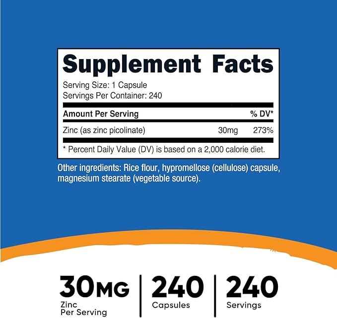 - 30 mg of Zinc (from Zinc Picolinate) Per Serving