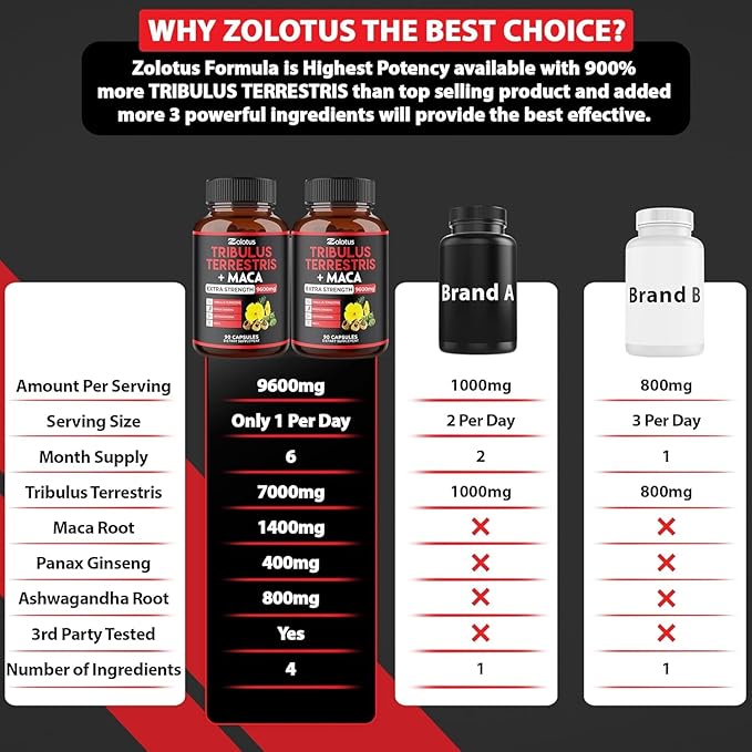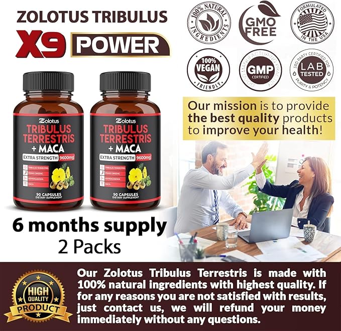- ✅ 4 in 1 : Zolotus Tribulus supplements Included Panax Ginseng, Ashwagandha, Maca. These powerful ingredients will help you many many health benefits in both men and women.