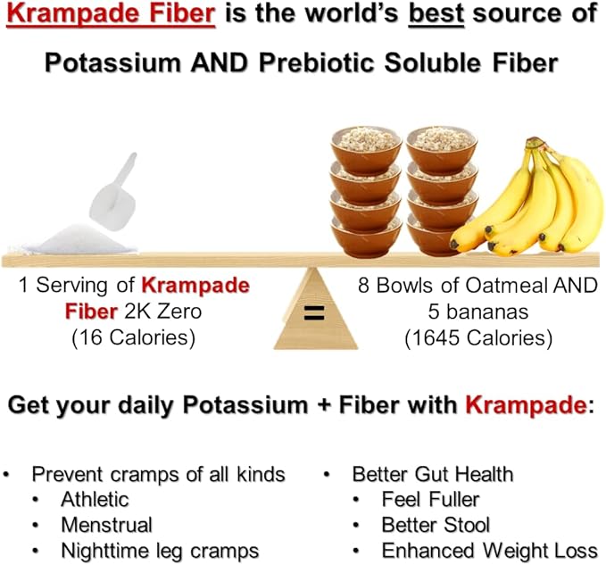 - Complete Cramp Defense - Krampade's proprietary potassium chloride and potassium citrate powder has 2x the potassium of coconut water and is the faster, more effective alternative to quinine for leg cramps, heating pad for period cramps, magnesium spray and other so-called solutions. If it cramps, we uncramp it, guaranteed.