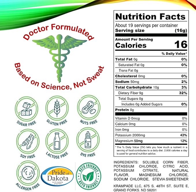 - Primary Supplement Type : Prebiotic Soluble Fiber, Magnesium, Potassium