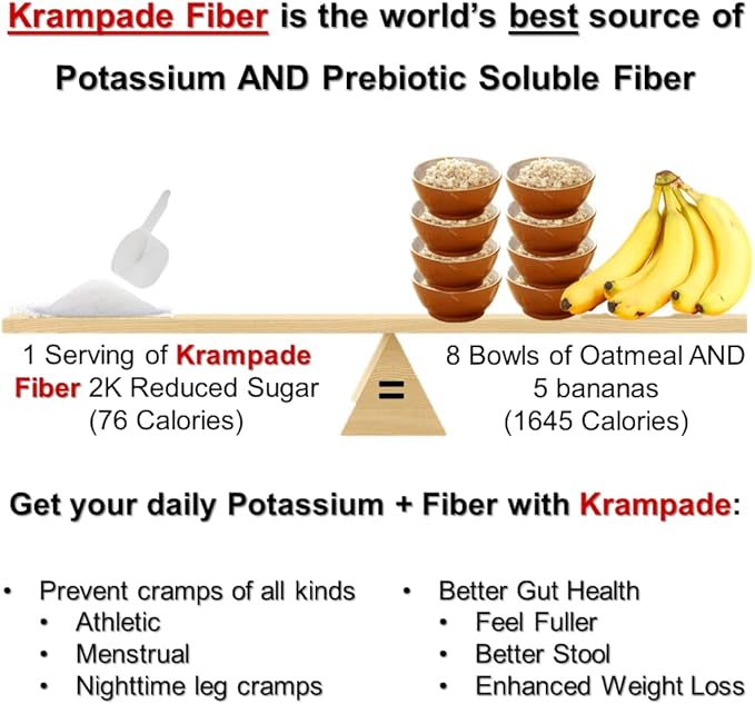 - Complete Cramp Defense - Krampade's proprietary potassium chloride and potassium citrate powder has 2x the potassium of coconut water and is the faster, more effective alternative to quinine for leg cramps, heating pad for period cramps, magnesium spray and other so-called solutions. If it cramps, we uncramp it, guaranteed.