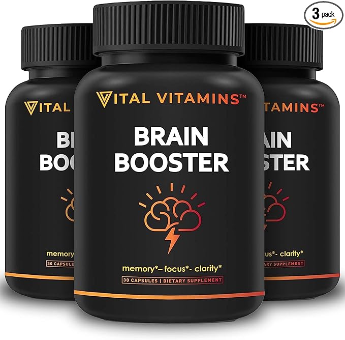 Vital Vitamins Brain Supplements for Memory and Focus (3 Pack) - Nootropic Brain Support - Memory, Clarity, Focus, Energy - Vitamin B12, Gingko Biloba, DMAE
