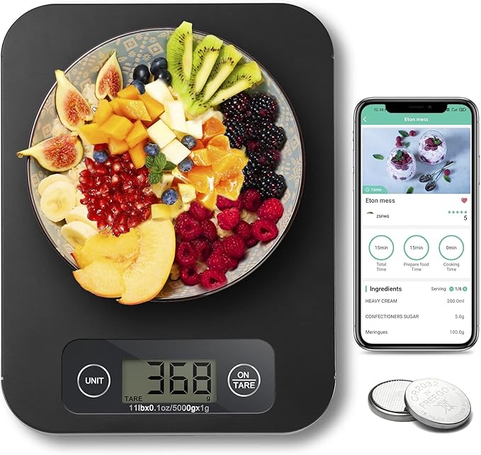 Smart Digital Food Scale for Weight Loss, Kitchen Food Scale Grams and Ounces with Nutritional Calculator, Food Weight Scale for Diet, Keto, Macro, Calorie, Cooking, Meal Prep 0.1oz/11lb
