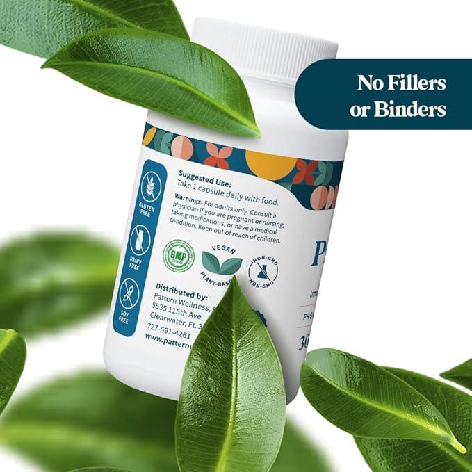 Pattern Wellness Probiotic Supplement - 51 Billion CFU - Promotes Healthy Gut Flora - Maintains Digestive Balance & Boosts Immune Health - All Natural, Non-GMO - 30 Vegan Capsules