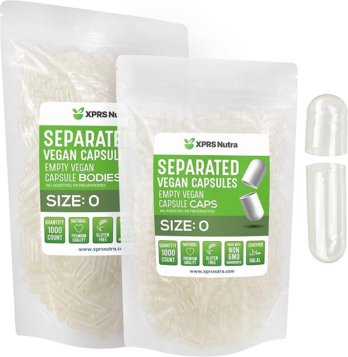 XPRS Nutra Vegan Size 0 Separated Capsules - 1000 Count Premium Empty Capsules Separated in Bags - Clear Separated Empty 0 Capsules - Pill Capsules Empty for DIY Supplement Filling
