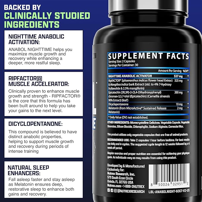 - π€ Nighttime Muscle Builder & Sleep Aid: Anabol Nighttime is formulated with melatonin to enhance sleep quality, ensuring you wake up refreshed and ready to tackle the day.