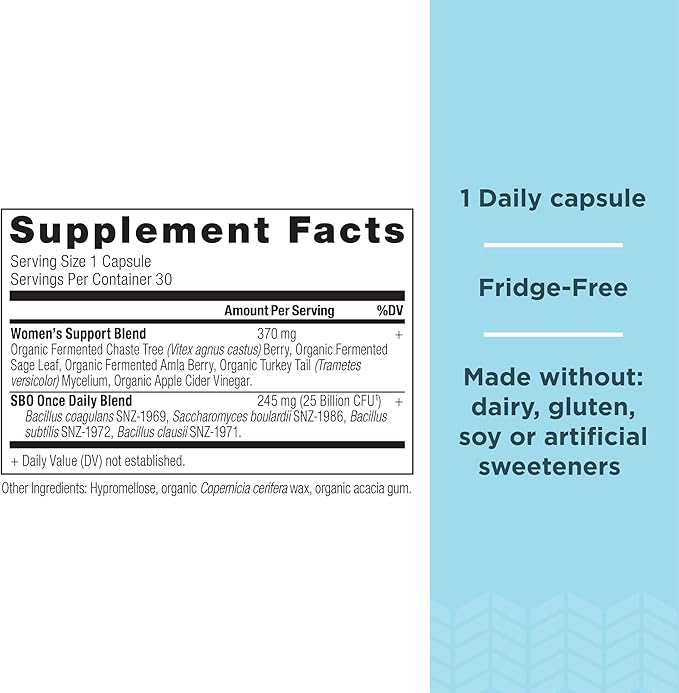 - FORMULATED FOR WOMEN – Ancient Nutrition's SBO Probiotics for women brings together a combination of soil-based probiotic strains and an organic fermented blend of superfoods formulated specifically to help support women's health.