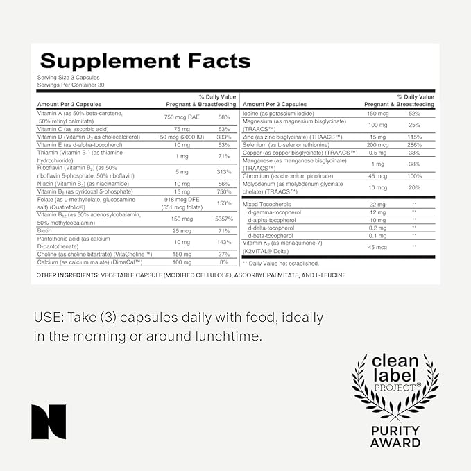 Needed. Multivitamin for Prenatal | Prenatal Multi Essentials Capsule- Pregnancy, Breastfeeding, Postpartum | Expertly-Formulated & Third-Party Tested, | 30-Day Supply