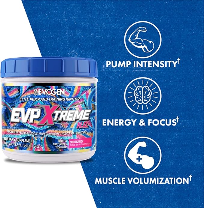 Evogen EVP Xtreme NO - Pre Workout Powder for Men & Women | Sugar Free Preworkout with Beta Alanine, Creatine, and Caffeine for Energy & Pump | Sour Candy | 40 Servings