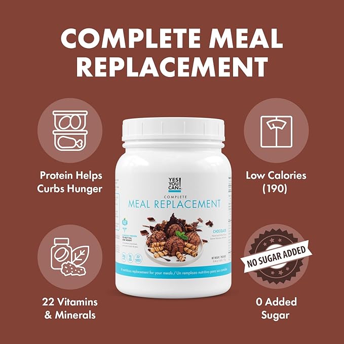 Yes You Can! Complete Meal Replacement - 15 Servings, 20g of Protein, 0g Added Sugars, 21 Vitamins and Minerals - All-in-One Nutritious Meal Replacement Shake (Chocolate)