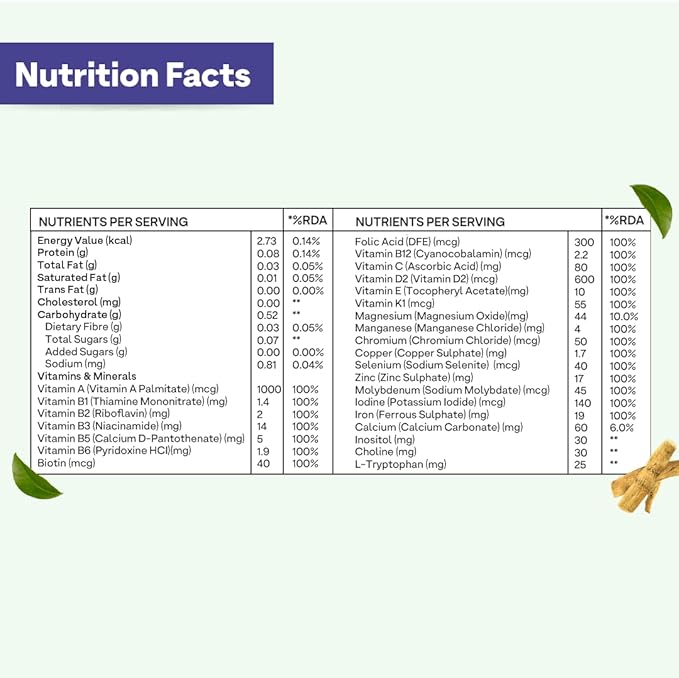 - Meets Daily Multivitamin Requirements for Men: OZiva Daily Men’s Multi meets 100% RDA (Recommended Daily Allowance) of 21 essential nutrients - Vitamin A, B Complex, C, D, E and K, that are needed for overall holistic health of men.
