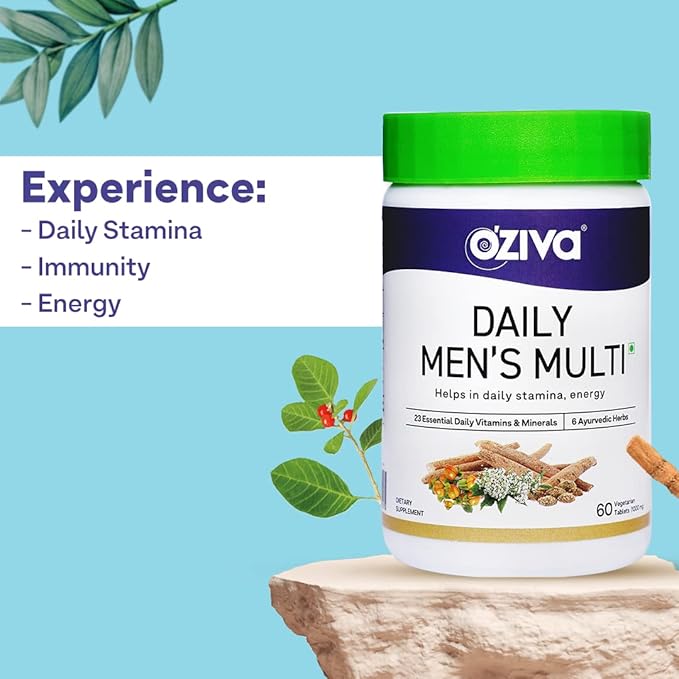 - Multivitamins for Men that Boosts Stamina and Energy: OZiva Plant Based Daily Men’s Multi is made up of ayurvedic herbs like Ashwagandha, Safed Musli, Kawach Beej, Valerian Root which boost stamina and energy levels and hence, improve productivity and performance.