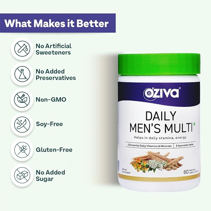 - Har Tarah Se Better With Clean & Plant-Based Products: OZiva Plant Based Daily Men’s Multi is a soy-free and gluten-free multivitamin for men that contains no added sugar or artificial sweeteners, making it absolutely safe for long term consumption.