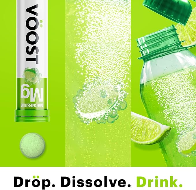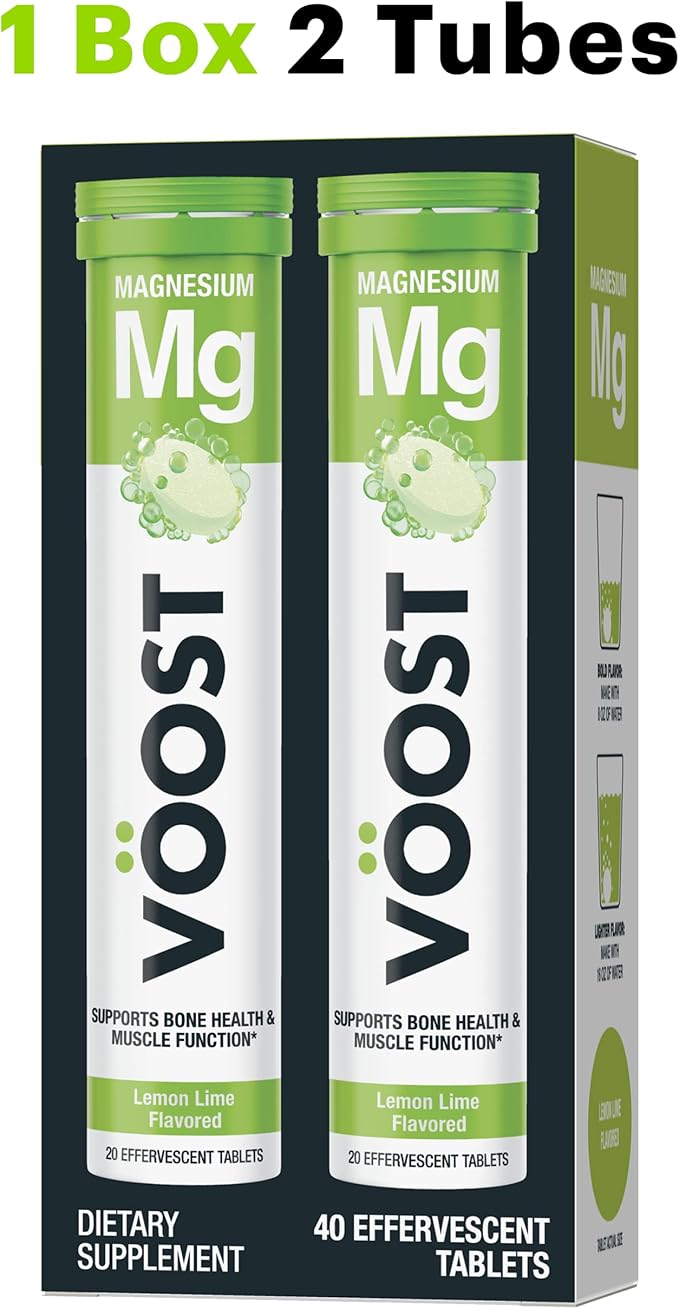 VOOST, Magnesium, Supports Bone Health and Muscle Health, Effervescent Vitamin Drink Tablet, No Sugar + Low Calorie Vitamin Supplement Blend, Lemon Lime Flavor, 40 Count