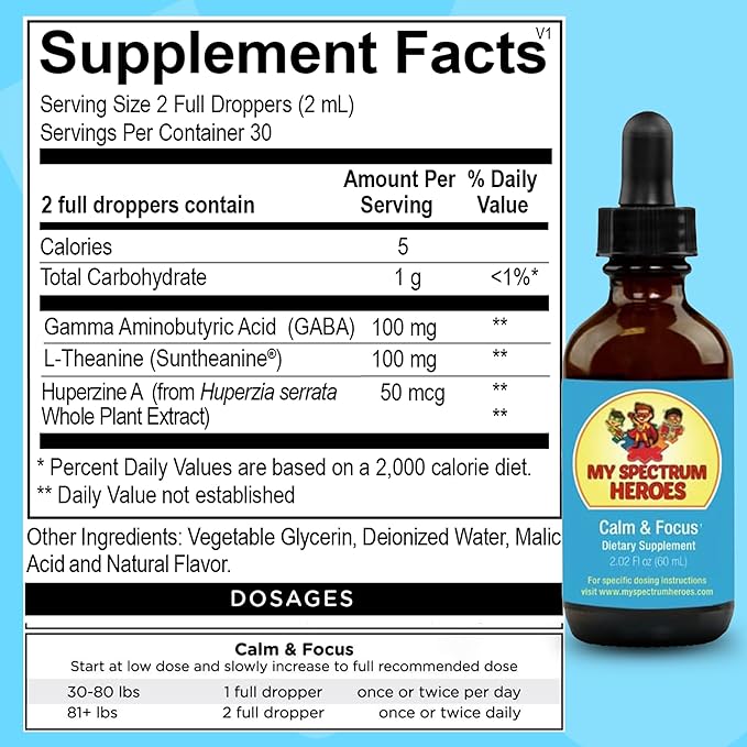 Calm & Focus Supplement Drops - Brain Support with L-theanine, GABA, Huperzine A - Enhance Focus for Kids or Adults - Boost Concentration for Kids & Teens - 2.02 FL oz. (60 ml)