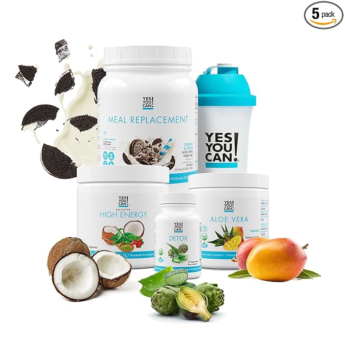 Yes You Can! Detox Plus Kit (Meal Replacement Cookies and Cream, Aloe Vera Mango) - Complete Meal Replacement Powder, High Energy Shake Booster, Aloe Vera Detox Supplement, Health Transformation