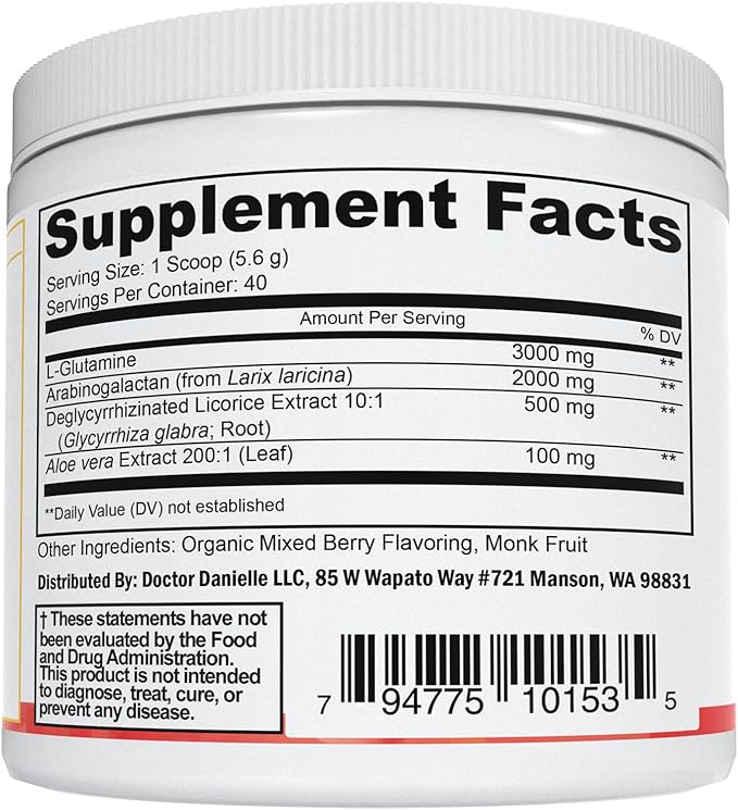 Doctor Danielle Gut Assist - Leaky Gut Repair Supplement Powder - Glutamine, Arabinogalactan, Licorice Root - Supports IBS, Heartburn, Bloating, Gas, Constipation, SIBO from, Berry Flavor