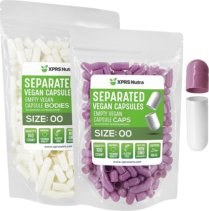 XPRS Nutra Vegan Size 00 Separated Capsules - 100 Count Premium Empty Capsules Separated in Bags - Separated Empty 00 Capsules - Pill Capsules Empty for DIY Supplement Filling (Lavender/White)
