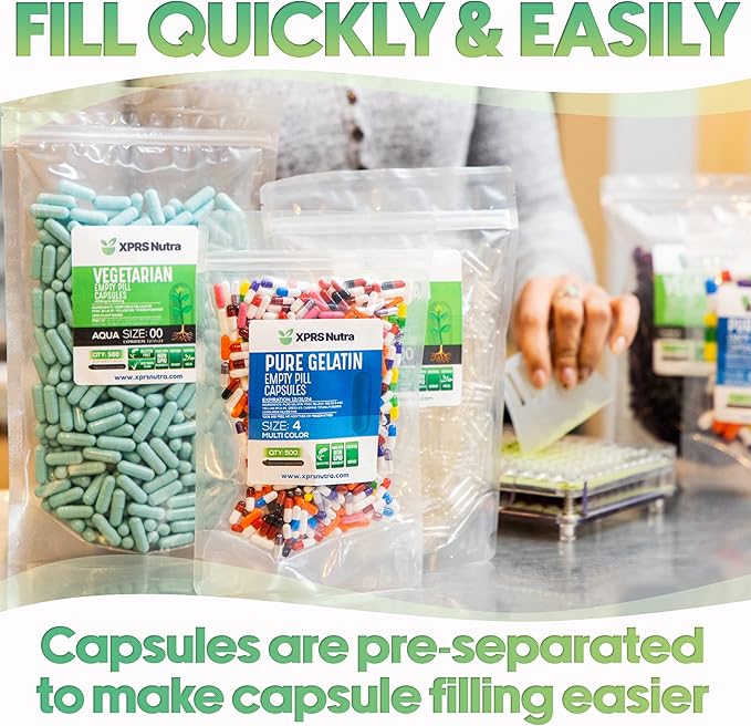 - Subscribe and Save - We know you'll love the quality and convenience of our capsules size 00. We source from trusted suppliers and process all of our inventory in Utah, USA. Up your health game this year with our separated pill capsules empty. Visit our storefront to see our full line of gel caps, vegetarian capsules, powdered supplements, and more.