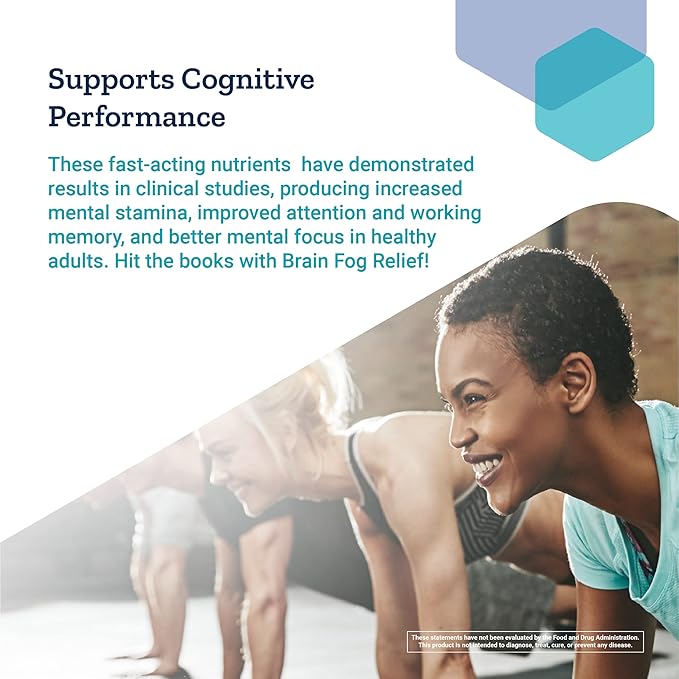 - SUPPORTS COGNITIVE PERFORMANCE – These fast-acting nutrients have demonstrated results in clinical studies, producing increased mental stamina, improved attention and working memory, and better mental focus in healthy adults. Hit the books with Brain Fog Relief