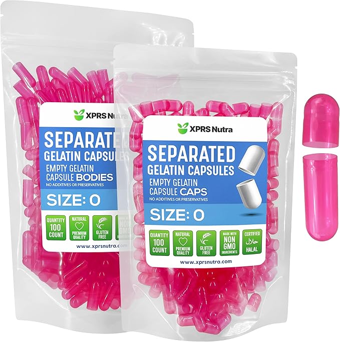 XPRS Nutra Gelatin Size 0 Separated Capsules - 100 Count Empty Capsules Separated in Bags - Size 0 Gelatin Capsules - Empty Gelatin Capsules for DIY Supplement Filling (Azalea Pink)