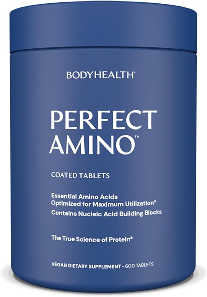 BodyHealth PerfectAmino (600 ct) Easy to Swallow Tablets, Essential Amino Acids Supplement with BCAAs, Vegan Protein for Pre/Post Workout & Muscle Recovery with Lysine, Tryptophan, Leucine, Methionine