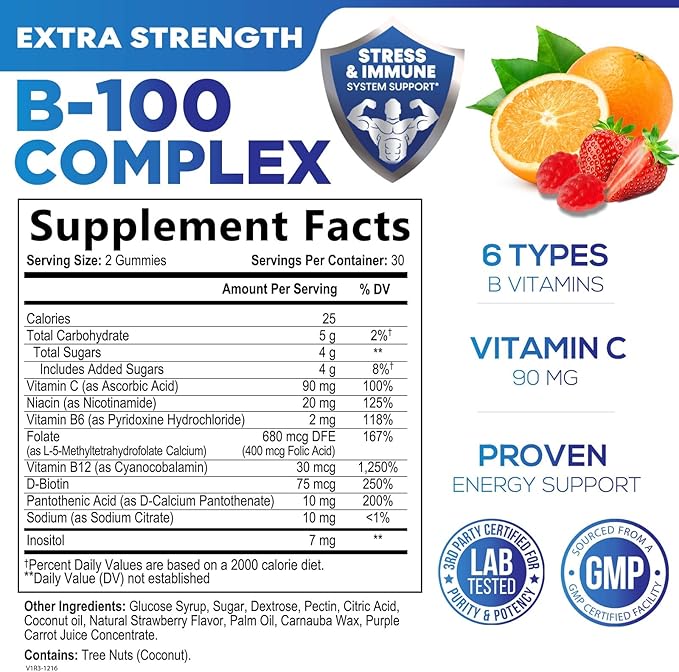 - Vitamin B Complex Gummies: 1 100 1000 1000mcg 12 140 160 2 60 acid adults b1 b100 b12 b3 b5 b6 b7 b9 basic bcomplex brain c capsules complejo complete day dietary energy extra folic for gummy hombres immune kids life made mcg men mujer multi nature natures nerve nutrition para plus softgels supplement supplements support tablets vit vitamina vitaminas vitamins super women