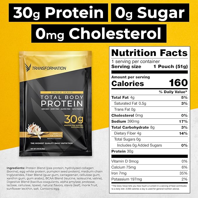 - AMINO OPTIMIZED: Protein is comprised of 9 ESSENTIAL AMINO ACIDS (3 BCAAs and 6 EAAs) that must be present in the right amount and ratio of each serving for optimal body composition. Transformation Protein powder has the ultimate blend of collagen, egg, and plant proteins to achieve the ideal amino acid profile, in amount and ratio, to help you build muscle quicker and recover faster.