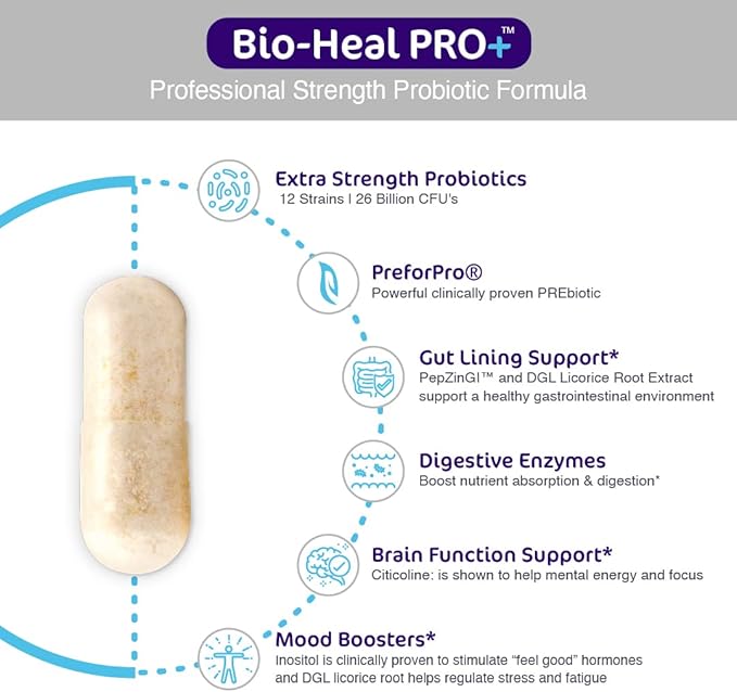 Bio-Heal Pro+ Probiotic 6-in-1 Capsules Supplement for Women, Men, and Kids, Restore Natural Digestive Balance for Gut and Colon Health, Detox Boosts Immune Defense and Reduces Inflammation