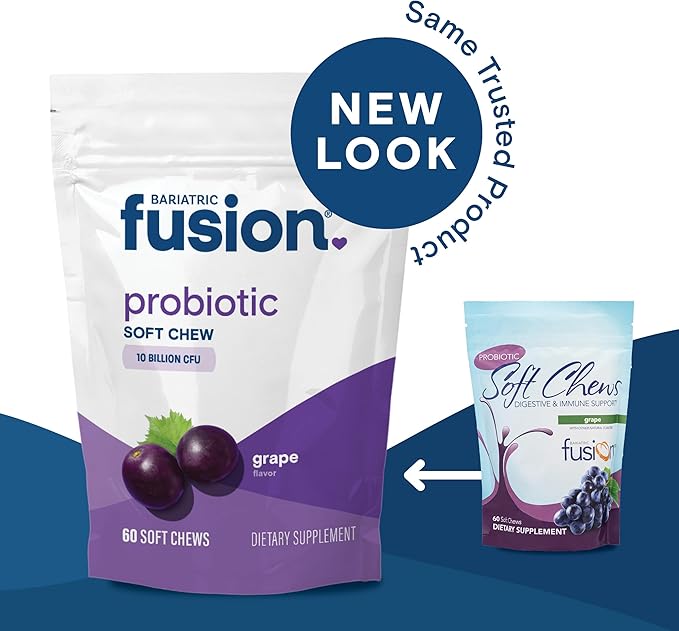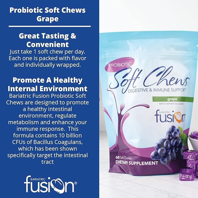 Bariatric Fusion Probiotic Soft Chews | Grape Flavor Chewy Bariatric Vitamin | 10 Billion CFU | Bacillus Coagulans | Support Digestive & Immune Health | 60 Count