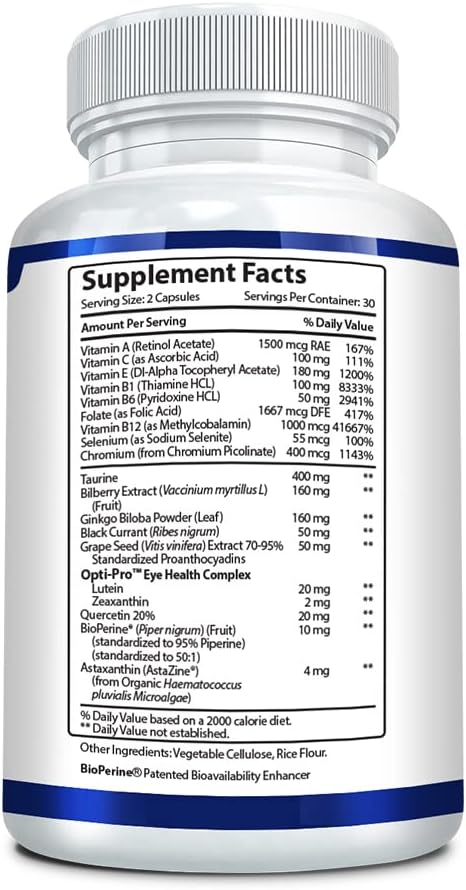 - The Three “B”s - Clinical studies have shown that optic neuropathy may be caused by long term Vitamin B1 deficiency, so we’ve included it in our formula. Additionally, we’ve added Vitamins B6, B9 (Folate) and B12, which, in combination, may decrease the risk of age related eye issues.