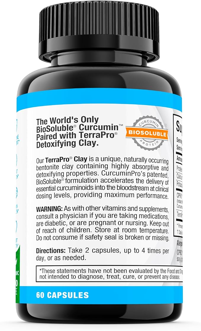 curcuminpro Detox Capsules | BioSoluble Whey Protein & Organic Turmeric Formula with Natural Bentonite Clay | Supports Gut, Heart, Health | 60-Count