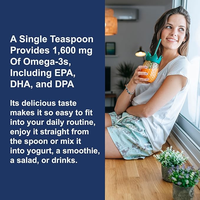 - 1,600 mg of omega-3s per teaspoon | Delicious natural just peachie flavor