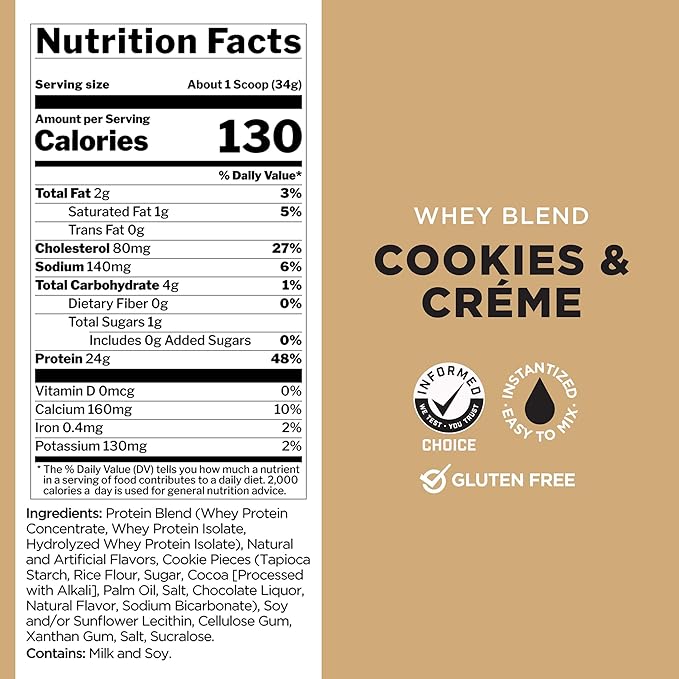 Rule One Proteins Whey Blend - Cookies & Crème, 24g Fast-Acting Whey Protein Concentrates, Isolates, and Hydrolysates Per Serving, with Naturally Occurring EAAs and BCAAs, 2lbs