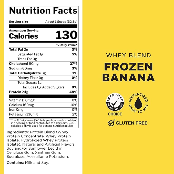 Rule One Proteins Whey Blend - Frozen Banana, 24g Fast-Acting Whey Protein Concentrates, Isolates, and Hydrolysates Per Serving, with Naturally Occurring EAAs and BCAAs, 2lbs