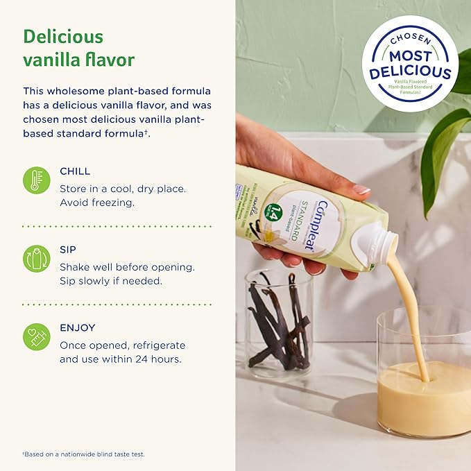 Compleat Standard 1.4 Plant-Based Vanilla Nutrition Shake - 18g Protein, 29 Vitamins & Minerals - Vegan Tube Feeding Formula - 8.45 Fl Oz (Pack of 24)
