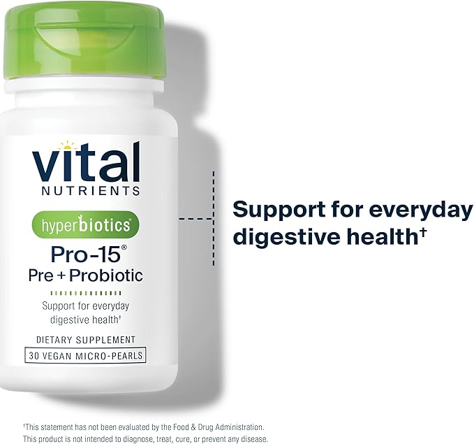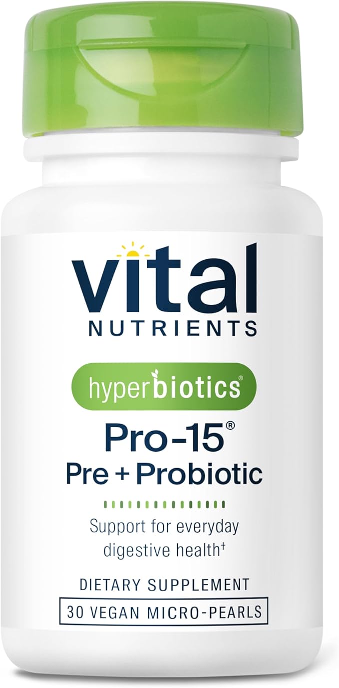 Hyperbiotics Vital Nutrients Pro-15 Pre + Probiotic | 15 Strains| Supports Occasional Constipation, Diarrhea, Gas & Bloating | Immune, Digestive & Gut Health | Shelf-Stable | Vegan | 30 Pearl Tablets