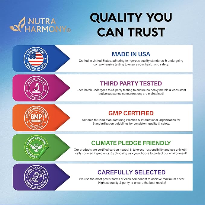 - Trustworthy Service — We are committed to providing exceptional customer service and transparency with NUTRAHARMONY’s carefully selected joint support supplements! With Glucosamine Chondroitin, you can trust that you're receiving a premium-quality supplement backed by scientific research and dedicated customer support!