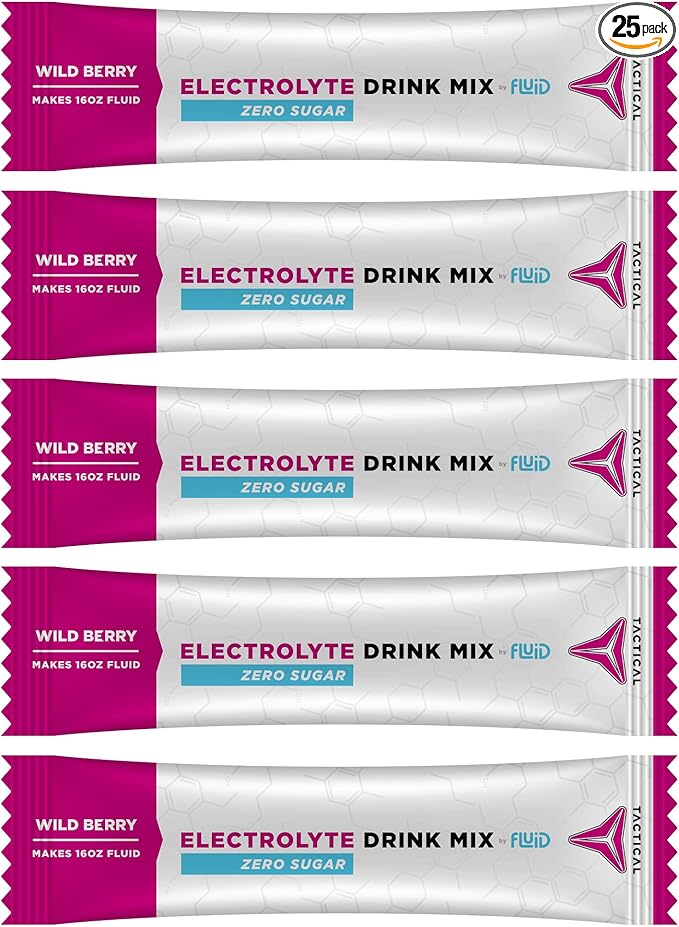 Fluid Tactical - Zero Sugar, Keto Electrolyte Powder, Hydration Packets, Made in USA (Wild Berry, 25 Count)