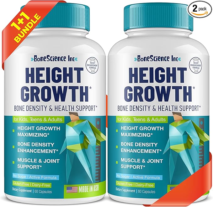 - Height Growth Pills - Growing taller is now possible with the exclusive formula of BoneScience Inc capsules. Since our body does not produce zinc or calcium as the main height drivers, there is a need for regular intake. Perfect for kids, teens, and adults, our growth pills provide a daily portion of essential nutrients to stimulate your height growth naturally and increase bone density safely.