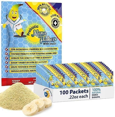 NuNutritional Designs, Prebiotic Nana Flakes with Inulin, 100% Pure Banana Flakes, Gut Health, High Protein & Fiber, Natural Diarrhea Remedy, IBS Relief, for Adults & Kids 4+ (100 Single-Serve Packs)